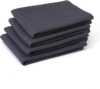Encasa Homes Geschirrtücher X-Large 70 x 45 cm (4er-Set) Hochsaugfähiges Waffeltuch-Teathandtuch Antibakterielles Finish für die Reinigung und schnelle Trocknung von Tellern, Baumwolle - Grau