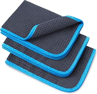 Waffeltuch 40x40 cm | 3er Pack Waffeltücher | Fusselfreies Poliertuch & Fenstertuch | Ideales Auto Trockentuch | Mikrofasertücher Auto Alternative