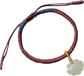 Glücksarmband Hetian Jade Concentric Lock Safe Lock Langlebigkeitsschloss Armband Weinrot Marineblau Handgewebtes Armband Verstellbares Amulett Im Retro-Stil,Um Geld Anzuziehen,Blau (Farbe: Rot)