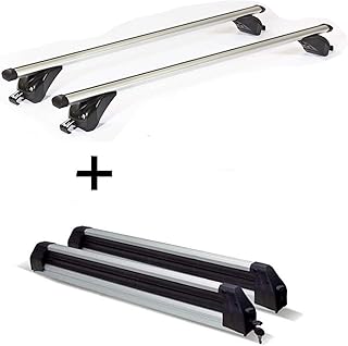 VDP Skiträger Silver Ice ausziehbar + Dachträger/Relingträger LION1 kompatibel mit Audi A4 (B6/8E/8H) Avant (5 Türer) 00-04
