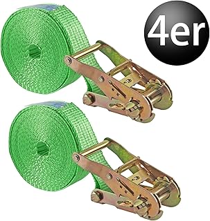 4 Stück Spanngurt Ratsche Zurrgurt 6m x 3.5cm x 2T Ratschengurt Riemen, Spannung 1000 daN Zurrkapazität 2000 daN Spanngurt mit Ratsche Grün