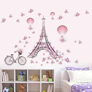 Wallpark Romantisch Rosa Schmetterling Paris Eiffelturm Blume Heißluft-Ballon Abnehmbare Wandsticker Wandtattoo, Kinder Kids Baby Hause Zimmer Kinderzimmer DIY Dekorativ Klebstoff Kunst Wandaufkleber