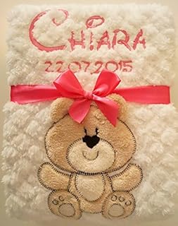Soft Babydecke mit Namen Datum bestickt Decke 75x100 cm Sleeping little bear Geschenk zur Taufe zur Geburt Kinderdecke