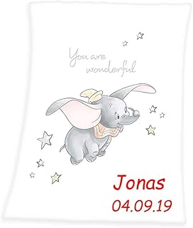 Soft Babydecke mit Namen Datum bestickt Decke 75x100 cm Mickey Minnie Mouse Raupe Nimmersatt Dumbo Hard Rock Cafe Geschenk zur Taufe zur Geburt Kinderdecke, Herding Babydecke:Dumbo