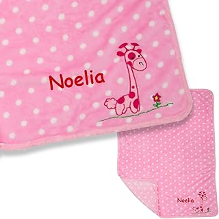 LALALO Giraffe Mädchen Babydecke mit Namen bestickt in Rosa/Pink, Plüschdecke Schmusedecke, Personalisierte Kuscheldecke mit Name für Babys als Geschenk zur Geburt, Geburtstag & Taufe, 100x80 cm