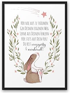 HASE Hör nie auf zu träumen ABOUKI Kunstdruck Poster Bild Geschenk-Idee Taufe Geburt Geburtstag Kind Junge Mädchen Baby - ungerahmt DIN A4