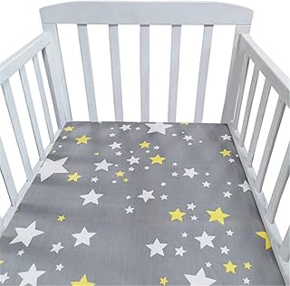 Amilian Spannbettlaken Spannbetttuch für Babybett Kinderbett 60x120 cm, 70x140 cm, 100% Baumwolle, fürs Baby, Baby Bettwäsche Größe: 120x60 cm, Muster: Sternchen Grau