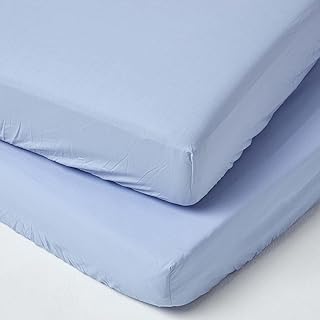 Homescapes Spannbettlaken fürs Baby- / Kinderbett, blau, Baby-Bettlaken 60 x 120 cm aus 100% Baumwolle mit Fadendichte 200, hochwertiges Spannbetttuch im 2er Pack aus ägyptischer Baumwolle