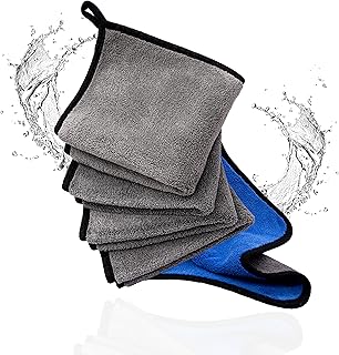 CHARS Ultra-dicke Plüsch-Mikrofaser-Handtücher, Auto-Reinigungstuch, professionelles, doppellagiges, super dickes Auto-Reinigungstuch zum Waschen, Polieren und Trocknen (40.6 x 40.6 cm, 5 Stück)