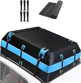 Auto Dachtasche Cargo Carrier 20 Kubikmeter Wasserdicht Dachgepäckträger mit Anti-Rutsch-Matte + 10 verstärkte Gurte + 6 Türhaken passend für alle Fahrzeuge mit/ohne Gepäckträger