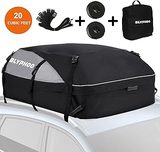 BLYPHOO Dachgepäckträger und Autodachtasche, wasserdicht, Militärqualität, robust, mit 8 verstärkten Gurten + Aufbewahrungstasche, passend für alle Autos mit/ohne Gepäckträger