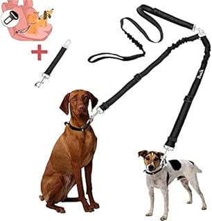 Lukovee Doppelter Hunde-Sicherheitsgurt mit Leine, zweifacher abnehmbarer Haustier-Sicherheitsgurt für das Auto, verstellbare elastische reflektierende Streifen