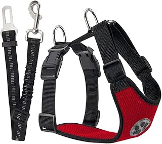 Slowton Hunde-Autogeschirr mit Verbindungsgurt, multifunktional, verstellbar, doppeltes atmungsaktives Netzgewebe, Sicherheitsgurt fürs Auto, rot, groß